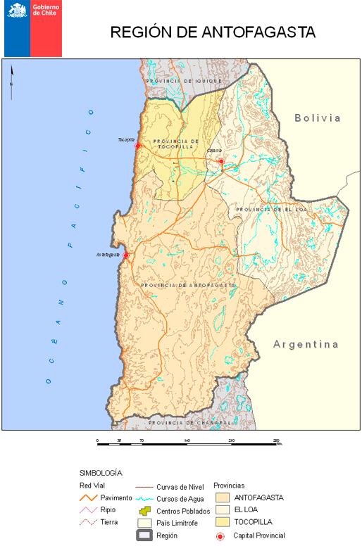 La Región de Antofagasta está integrada y dividida administrativamente en tres provincias: Antofagasta, El Loa y Tocopilla. Cuenta con 9 comunas: Antofagasta, Calama, Tocopilla, Mejillones, María Elena, Taltal, Sierra Gorda, San Pedro de Atacama y Ollagüe.